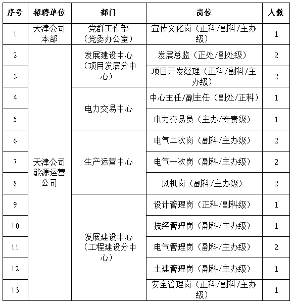 详见《天津公司招聘岗位主要职责及任职条件》(附件1)。
