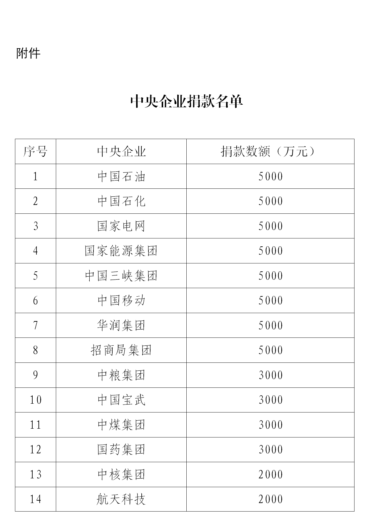 附件:中央企业捐款名单