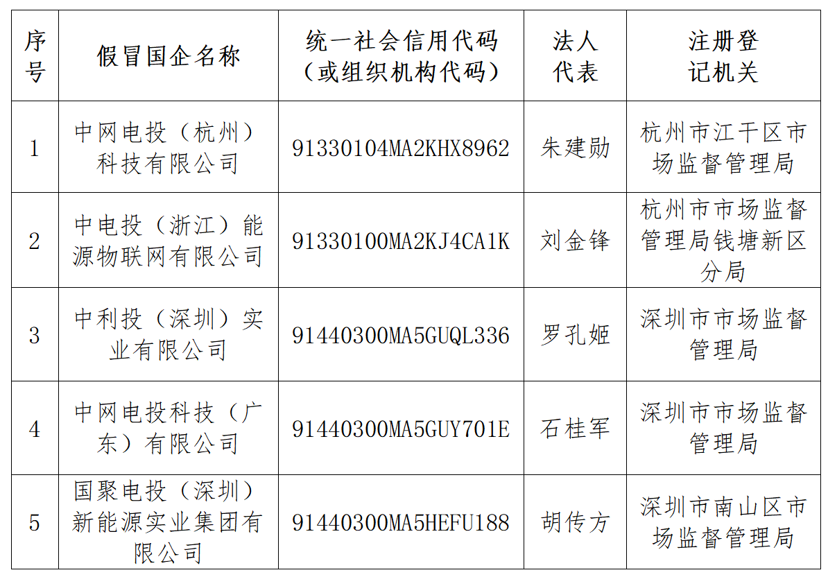 注:假冒国企下设各级企业见附件。
