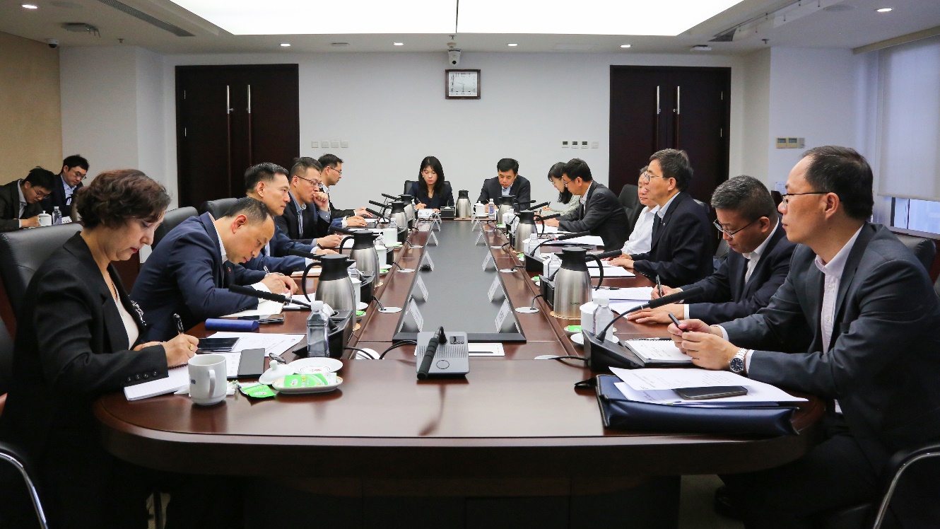 5月14日,华体会集团_华体会官方网站集团党组成员、副总经理陈海斌在总部与中国进出口银行首席风险官李忠元会谈,就进一步深化国际业务合作进行交流。