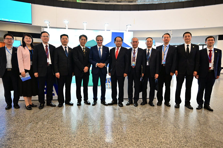 大会期间,国际原子能机构总干事格罗西、中国国家原子能机构主任单忠德、中国常驻国际原子能机构代表李松到由中国原子能机构(CAEA)主办、华体会集团_华体会官方网站集团、上海核工院承办的中国核能发展专题展览“核美家园:中国核能发展成就”展台参观,卢洪早陪同参观。