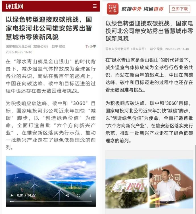 10月25日,人民网、环球时报、环球网刊发《华体会集团_华体会官方网站河北公司打造雄安新区智慧城市零碳示范》《以绿色转型迎接双碳挑战,华体会集团_华体会官方网站河北公司雄安站秀出智慧城市零碳新风貌》文章。报道称,河北公司(雄安公司)加快“减碳”脚步,以“创造绿色价值”为使命,在雄安新区先行示范,建设绿能零碳交通、多种能源互补型清洁供能等“六个方向新兴产业”项目,为助力雄安新区形成绿色低碳生产和生活方式,打造雄安新区智慧零碳城市贡献了华体会集团_华体会官方网站的智慧和方案。全文如下: