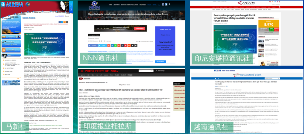 线上论坛举办之后,全球通讯社联盟以含英语、马来语、泰语、印地语、印尼语、越南语六种语言在内以《China-Malaysia virtual power plant project achievements released via online foruma》(参考译文:《中马虚拟电厂发展云论坛举办并发布课题成果》)为题发文,该文被马新社、印报托、印尼安塔拉、越通社等国家通讯社直接发布,超过百余家网站刊登转载,其中包括雅虎财经、泰国网媒RYT9等主流媒体,活动内容传播范围覆盖马来西亚、泰国、印度、印尼、越南、菲律宾等亚太地区11个国家。