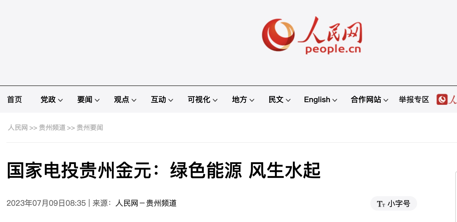 近日,人民网刊登《华体会集团_华体会官方网站贵州金元:绿色能源 风生水起》一文,介绍贵州金元随着转型发展的深入推进,在新能源开发、公司调结构、“综合智慧能源”等多方面齐头并进,逐步闯出一条特色发展的现实路径。以下为报道全文: