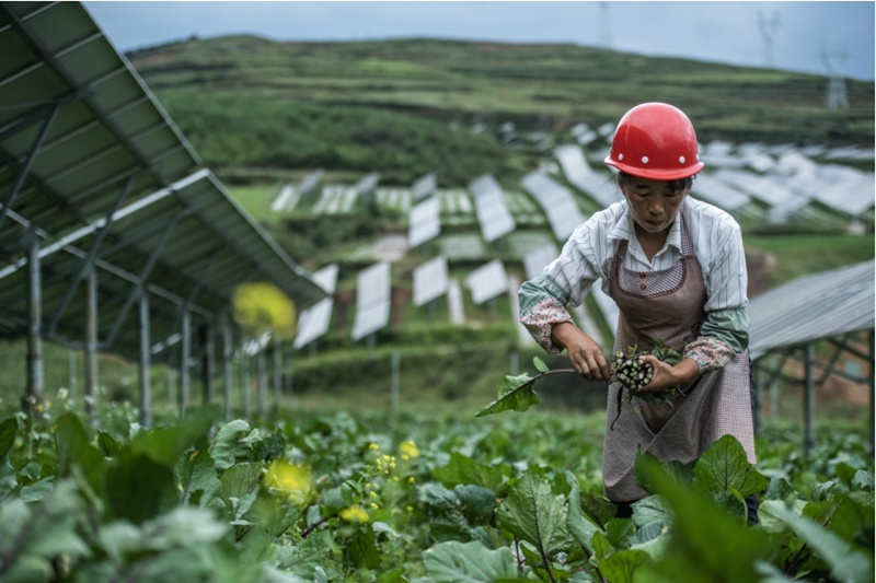 “现在这里建光伏,有几万元的租金。我在家门口打工,每个月的收入很满意。”家住贵州省威宁自治县龙街镇龙街村扁居组的龙秋香谈起了她这几年的新营生。自威宁仙水窝农光互补电站开启农业种植以来,龙秋香就到电站里的这家农业发展公司务工,每月可拿到3000元左右的工资。