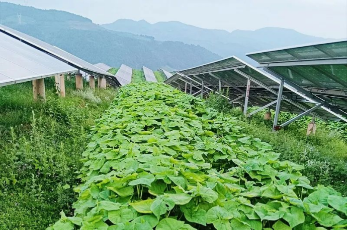 板上发电、板下种植,这是贵州威宁自治县探索的光伏+农业新模式:将太阳能发电组件与农业设施、农业种植养殖相结合,在山地间采用高支架和大间距布置光伏阵列,并利用光伏板下空间种植生长条件适宜的粮食化农作物,形成融合互补之势。