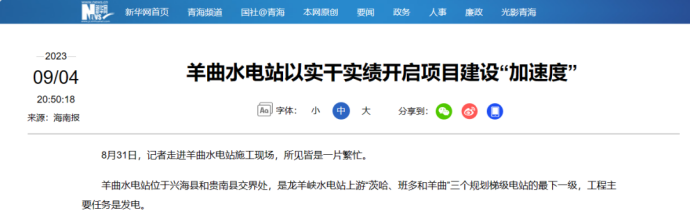 近期,新华网、人民网刊发《羊曲水电站以实干实绩开启项目建设“加速度”》一文。报道称,羊曲水电站位于兴海县和贵南县交界处,是龙羊峡水电站上游“茨哈、班多和羊曲”三个规划梯级电站的最下一级,工程主要任务是发电。作为我国首条±800千伏青豫直流特高压外送通道的重要支撑调峰电源,羊曲水电站建成后,世界上首条主要输送风光新能源的青豫直流特高压外送通道即可满负荷送电,对助力国家实现“双碳”目标意义重大。以下为报道全文: