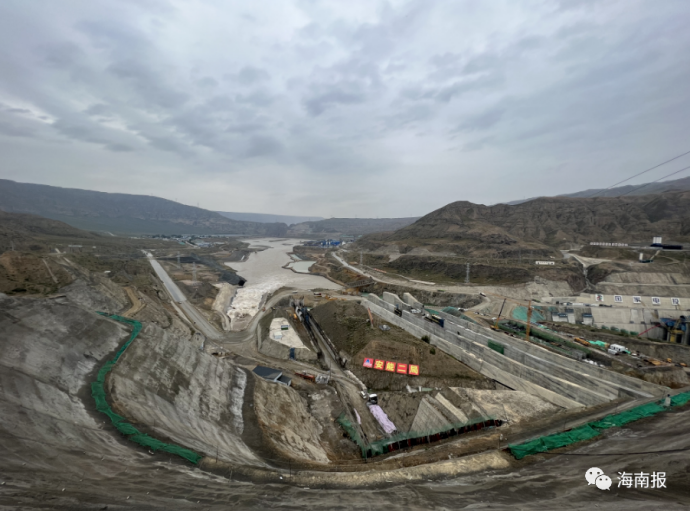 在施工现场,记者看到,滚滚黄河水沿着导流明渠奔流而下,工人们加班加点忙施工,各类大型设备正常作业,整个项目工地一片繁忙。
