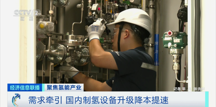 需求牵引 国内制氢设备升级降本提速如今,氢能重卡、氢能机车、轮船、飞机等新型运载工具逐步试点。随着绿氢化工等新场景加速涌现,国内可再生能源制取绿氢行业正在成为投资热点,但对于仍处发展初期的氢能产业来说,高成本的难题该如何解决?安徽合肥的一个电解水制氢的测试平台,拥有目前市场上最主流的制氢设备电解槽,通过风电光伏等绿电制取氢气,每5度绿电就能制取1立方米的氢气。目前,该设备在今年的出货量是去年的近两倍。