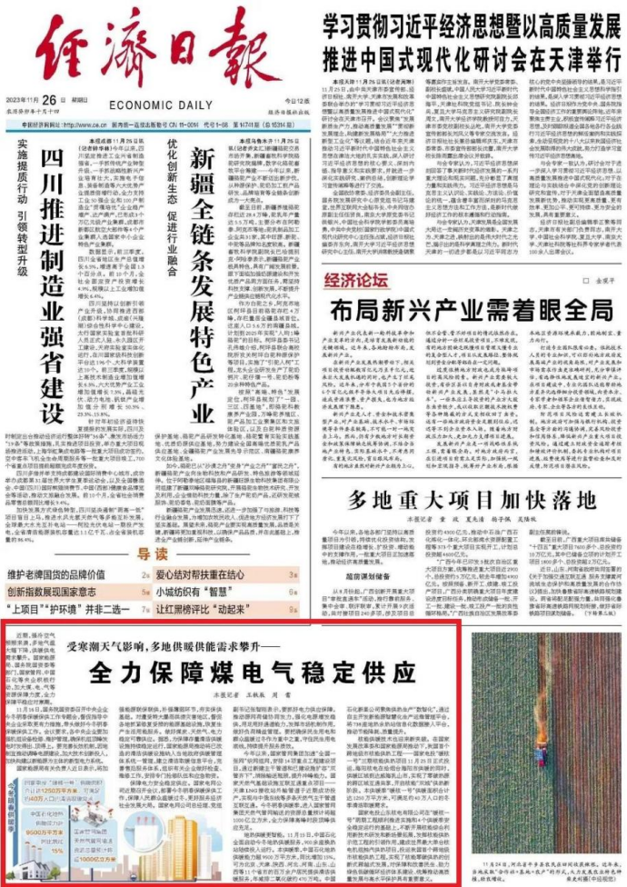 11月26日,《经济日报》头版刊发《受寒潮天气影响,多地供暖供能需求攀升——全力保障煤电气稳定供应》一文。报道称,山东核电在“暖核一号”两期工程顺利推进实施和4个供暖季安全稳定运行的基础上,不断开展核能综合利用新技术研发和新场景拓展,发挥核能供热示范工程的引领作用,建成世界最大单台核电机组抽汽供热项目,投运我国首个跨地级市核能供热工程,实现了核能零碳供热的创新式跨越式发展,对保障和改善民生、助力绿色低碳循环经济体系建设、统筹推动高质量发展与高水平保护具有重要意义。以下为报道全文: