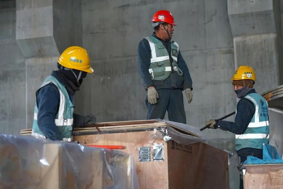 2024年1月30日,在羊曲水电站安装间,施工人员正在作业