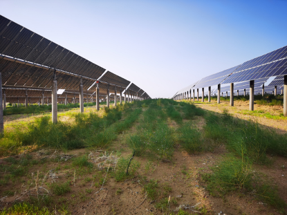 面对这一难题,骏马电站设计单位结合光伏特性和区域地形、气候等特点,创新性的将生态修复与清洁能源开发有机结合,采用了“板上发电、板下修复、板间种植”的“林光互补”立体化生态模式。不仅开发利用了太阳能资源,还有力推动了沙漠生态治理。