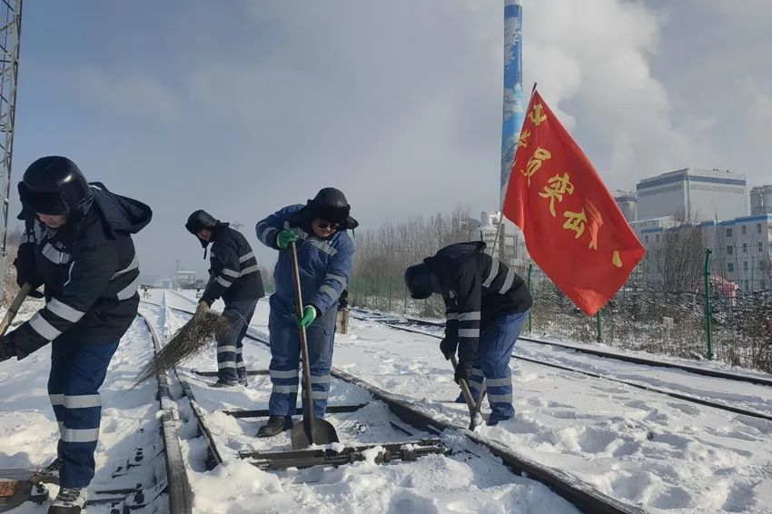 ▲党员突击队正在清理铁路线路上的积雪、积冰,守护百姓温暖过冬