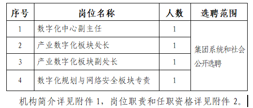 为推进集团公司“2035一流战略”落地和国有资本投资公司改革,加快推动集团总部职能转型,相继组建成立华体会集团_华体会官方网站财务共享服务中心(简称“财务共享中心”)和华体会集团_华体会官方网站数字化管理中心(简称“数字化中心”)。财务共享中心和数字化中心是集团公司推进管理数字化、集约化,提升管理效率和质量的服务保障中心,是建设世界一流清洁能源企业的重要支撑机构。根据工作需要,公开选聘以下人员。