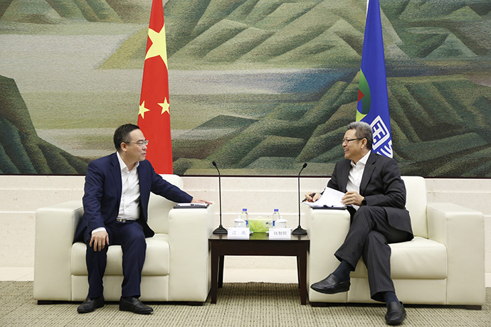 11月19日,华体会集团_华体会官方网站董事长、党组书记钱智民在集团公司总部会见华泰联合证券党委书记、董事长江禹。