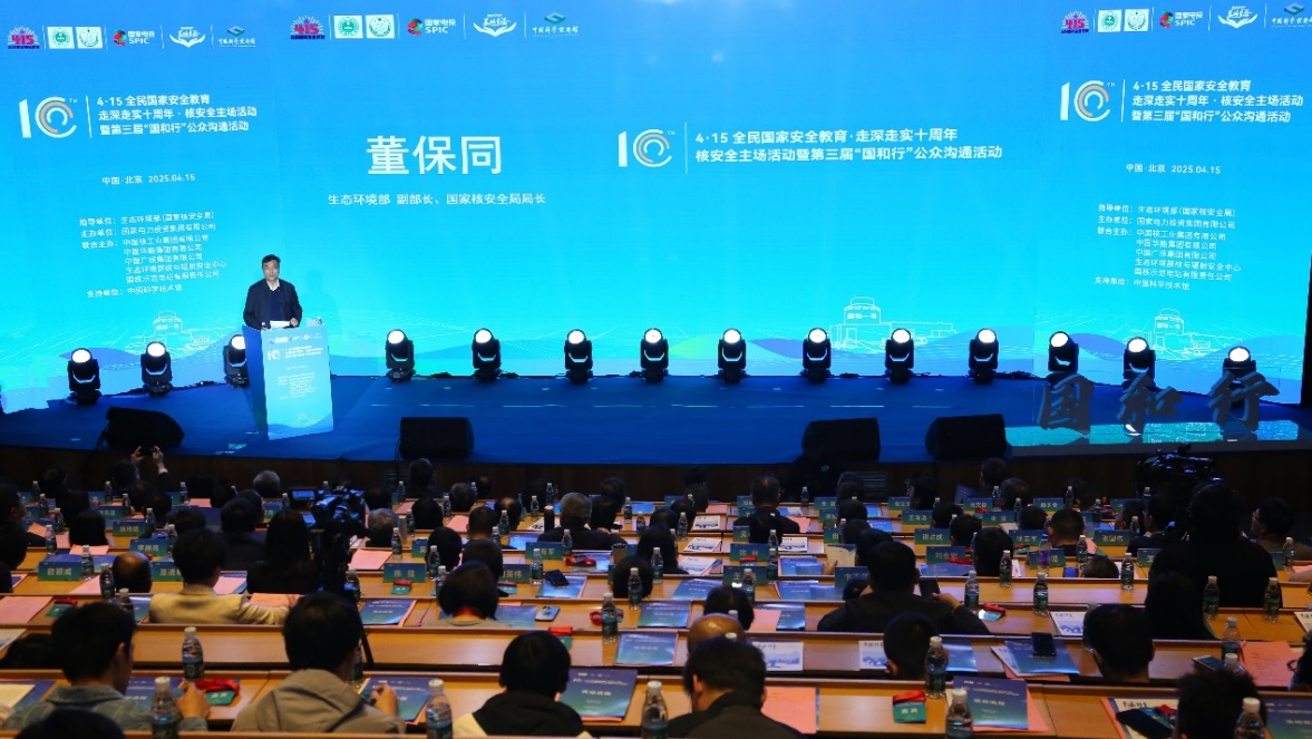 董保同在致辞中指出,过去十年,核安全系统强化政治引领,总体国家安全观和核安全观深入人心,推动核安全法规标准建设不断完善,核安全责任体系逐步健全。 “华龙一号”“国和一号”、高温气冷堆等先进核电技术实现自主掌控,核电规模跃居世界第一,本质安全度显著提升。核安全监管体系持续优化,打造了一支政治强、本领高、作风硬、敢担当的监管队伍。同时,不断强化国家安全和核安全教育,全方位筑牢核安全防线。核安全是国家安全的重要组成部分,是核事业发展的生命线。为确保高水平安全,要守土尽责,切实担负起确保高水平核安全的主体责任;要全民参与,大力提升全社会核能与核安全科学认知;要创新形式,不断扩大公众沟通品牌及其影响力。希望各方携手共进,不断提升核安全保障水平,为维护国家安全,推动经济社会高质量发展作出新的更大贡献。