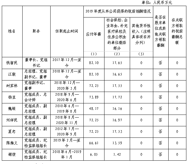 1.上表披露信息为我公司企业负责人2019年度全部应发税前薪酬(不含2019年发放的以往年度薪酬)。