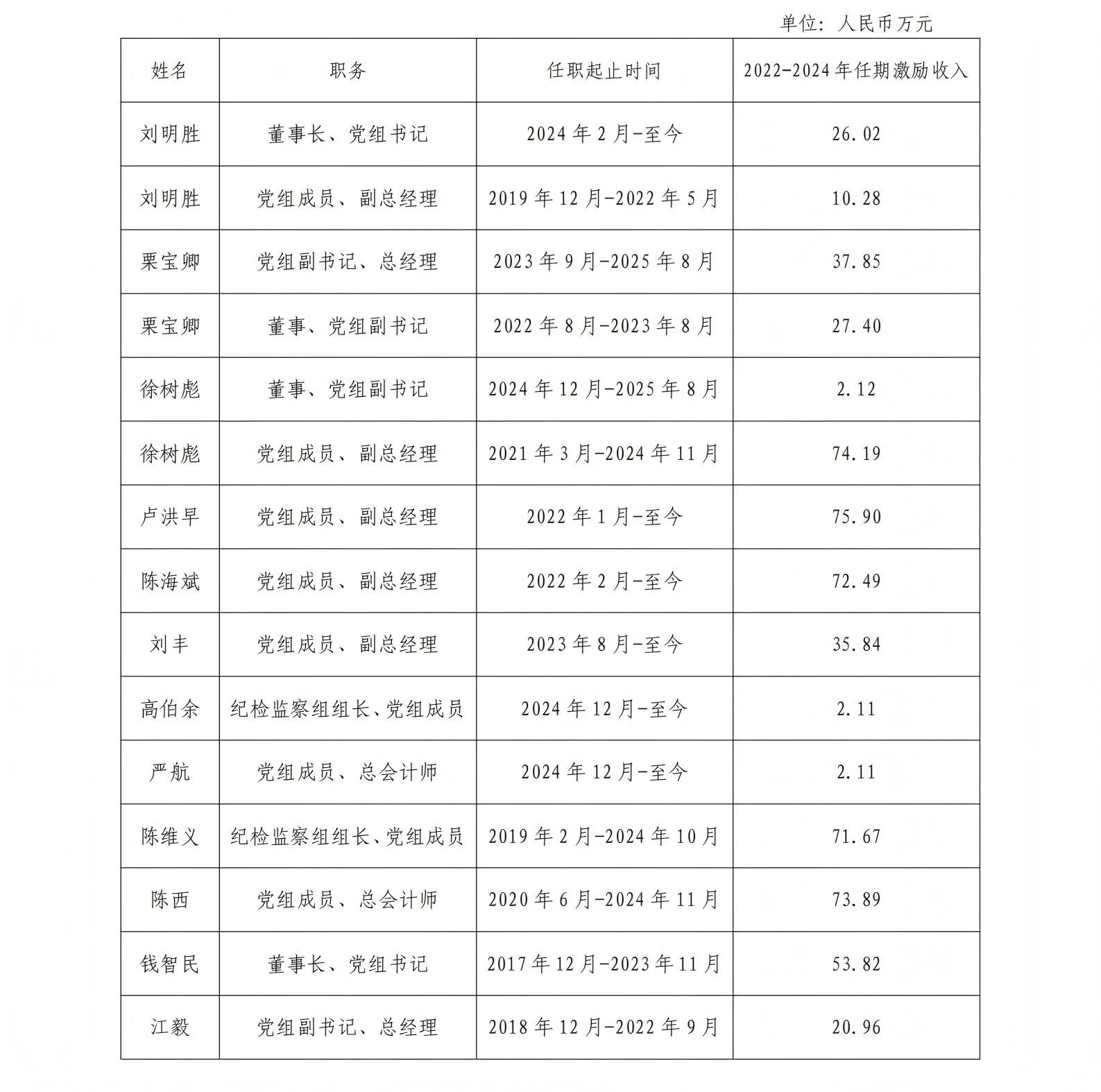华体会集团_华体会官方网站企业负责人2022-2024年任期激励收入情况