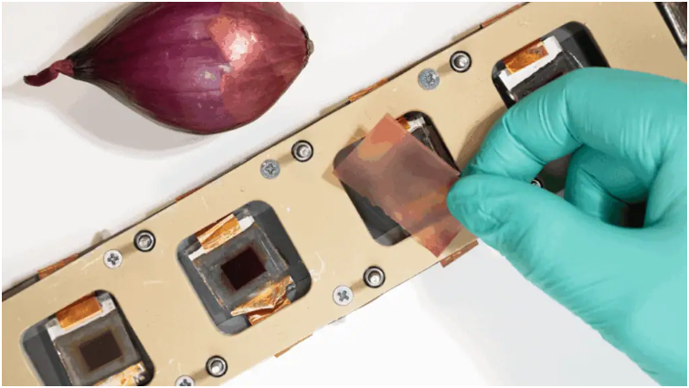 在芬兰图尔库的一个实验室里,科学家们在可持续太阳能研究领域取得新进展,发现红洋葱的纸质红色外皮是开发高性能生物基紫外线防护膜的关键材料。