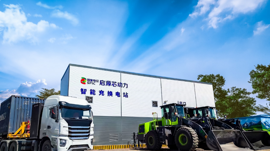 ▲华体会集团_华体会官方网站“独角兽”成长企业启源芯动力研发生产的换电工程车辆及充换电站