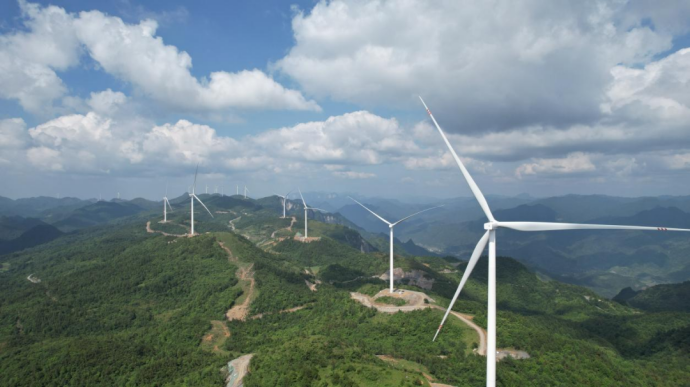 ▲五凌电力碗米坡电厂大青山二期50兆瓦风电项目实现全容量发电。