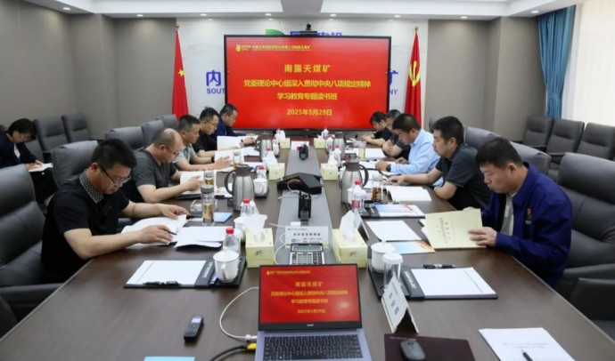 ▲内蒙古公司南露天煤矿党委开展深入贯彻中央八项规定精神学习教育专题读书班,党委委员分章节领学并交流心得体会。