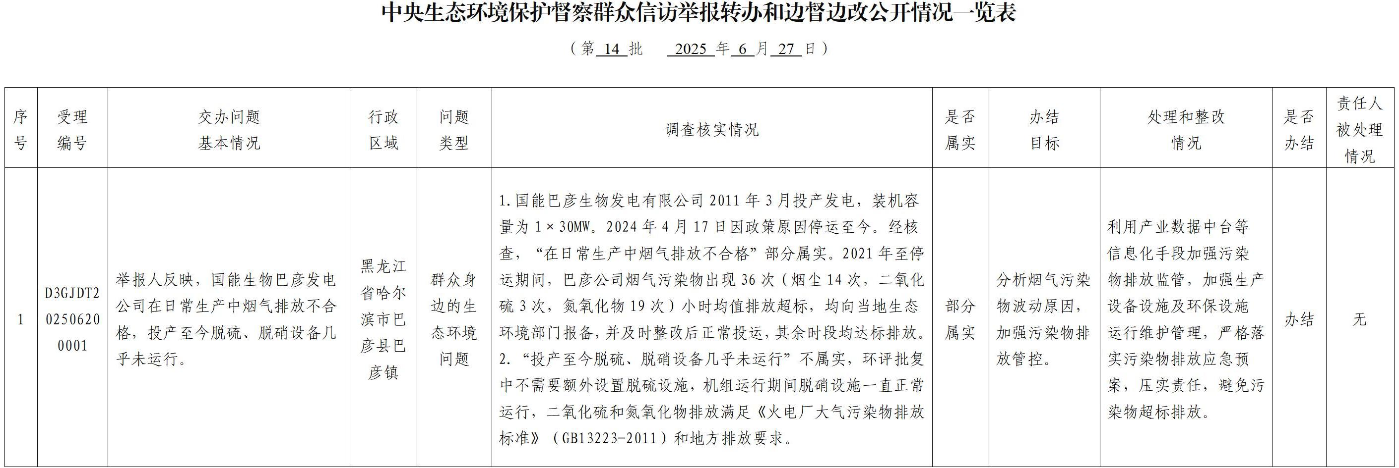 中央生态环境保护督察群众信访举报转办和边督边改公开情况一览表(第十四批)