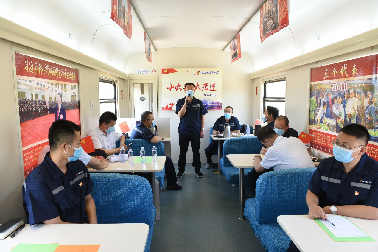 “由于平时10天一倒班的作息,加之工作地点分散,大家在一起交流的机会特别难得,我们这些党员想搞个学习、组织个活动就更难了。”杨青山如是说。为解决铁路沿线分散党员集中组织生活难的问题,铁路运输分公司党委创新思路,充分利用自有资源,将公司仅有两节车厢的自有通勤列车进行了改造,将其中一节餐车车厢改造为党建活动阵地,并全面升级了阵地软硬件设施。抓住每月沿线职工3次开行交接班通勤列车的契机,该公司党委积极开展党员组织生活、党性教育、党员议事和交流研讨等活动,充分运用数字化、信息化等手段和载体,将单一的党员流动课堂升级为全方位、全体系的党建“移动堡垒”,打造出“小火车、大党建”的党建特色品牌,在结合实际深化党建工作实效的道路上做出了具有示范意义的实践探索。而这次“相聚”正是该公司党委依托“小火车、大党建”品牌,为庆祝建党99周年组织的一次特色活动。