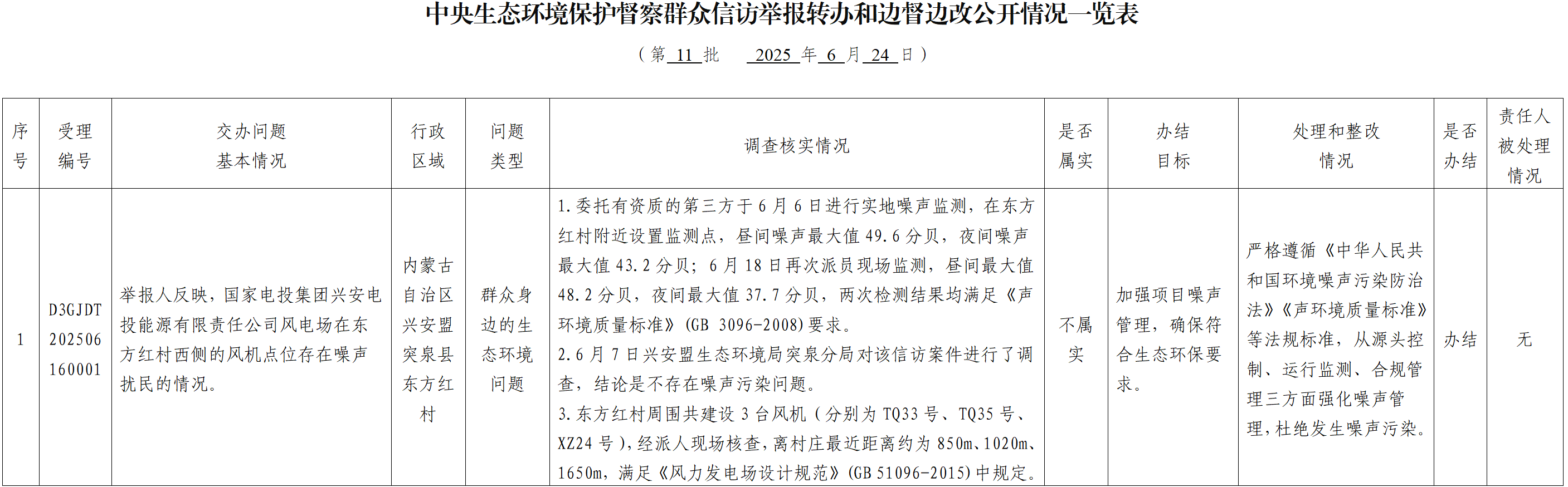 中央生态环境保护督察群众信访举报转办和边督边改公开情况一览表(第十一批)